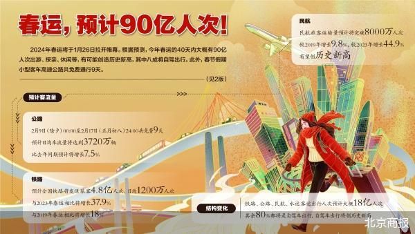 2024年春运将从1月26日开始,至3月5日结束,共40天。在这40天里,探亲流、务工流、学生流、旅游流等几大客流叠加,人潮涌动的春运大军将再次奔向天南海北,久违的年味洋溢在返乡路上,一个人员和货物高效流动的中国,充满了生机和活力。 记...